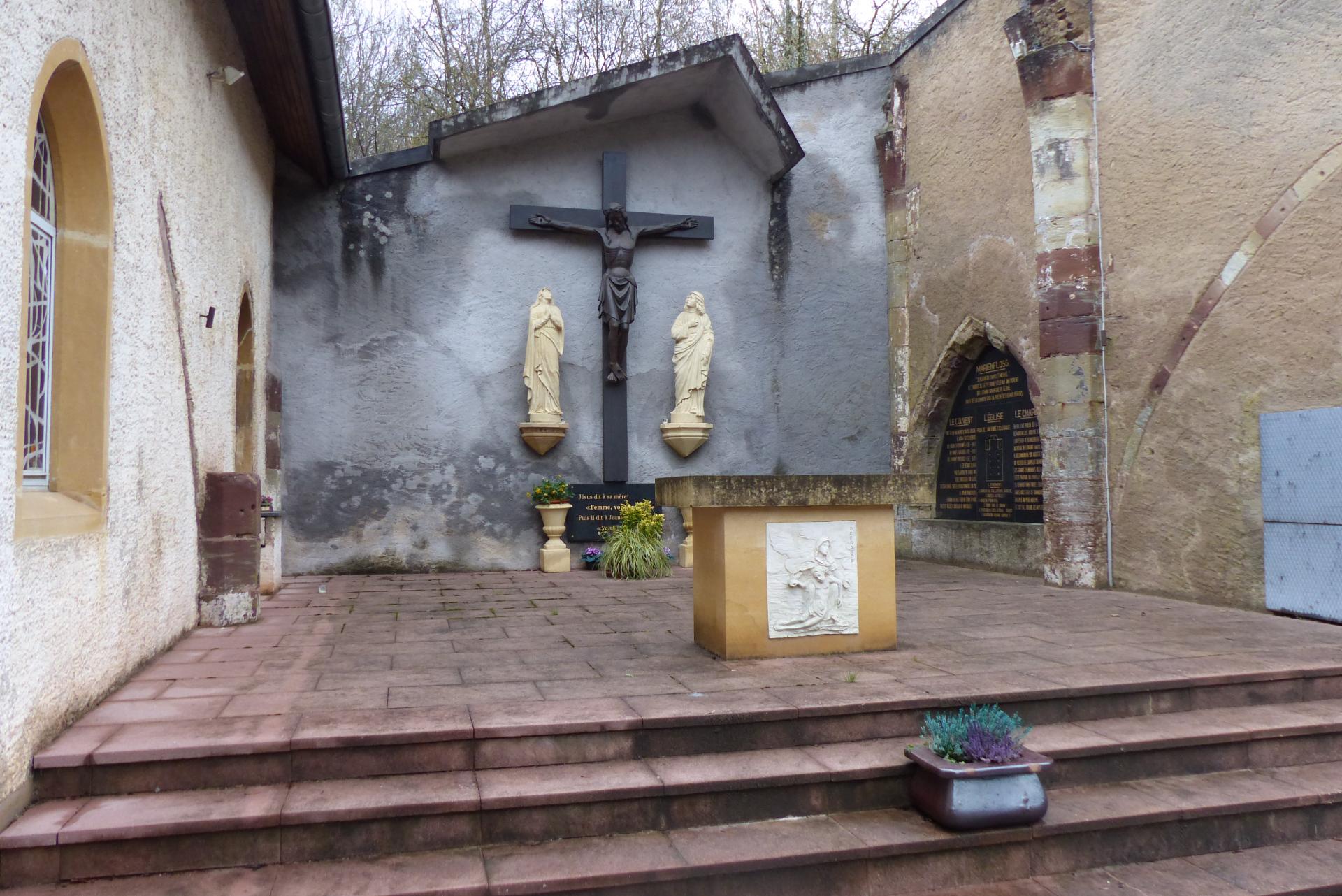 Après le nouveau cimetière israélite prendre la route qui descend à gauche vers le ruisseau.Passer sur le vieux pont et remonter vers la chapelle de Marienfloss , lieu de commémoration de la création du rosaire .