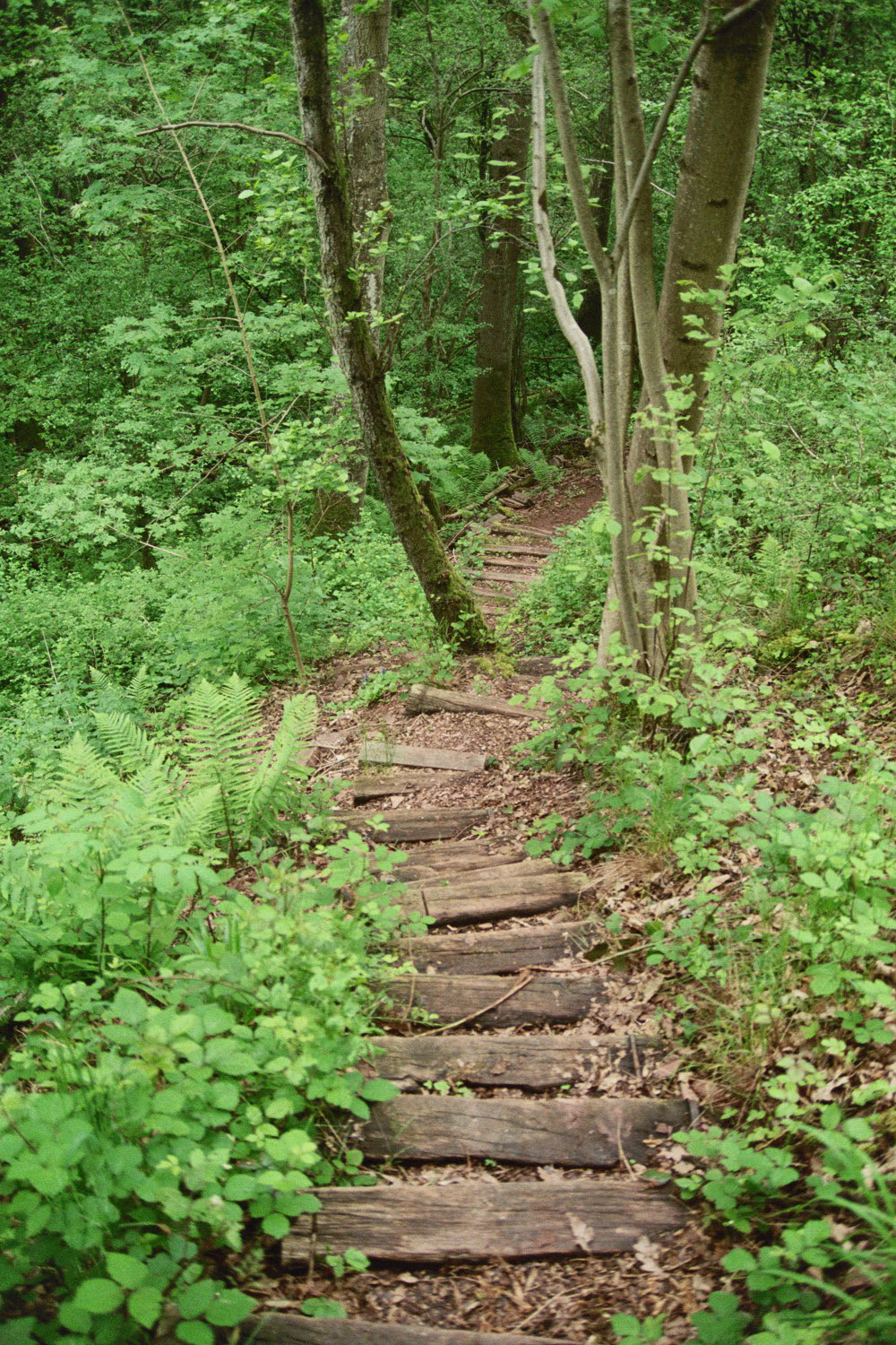 Vous arrivez ensuite sous les carrières de quartzite.Continuer sur le chemin balisé et passer sur le pont suspendu au-dessus du ruisseau de Montenach puis monter le chemin raide jusqu'à la route.Là il faut tourner à gauche puis marcher 300 mètres environ sur la route de Rustroff .Prendre alors le premier chemin à droite et marcher sur 2 kilomètres jusqu'à Montenach